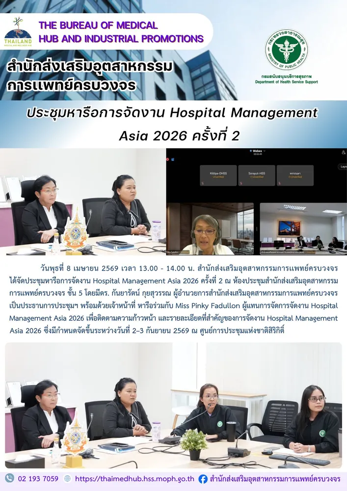 ประชุมหารือการเข้าร่วมจัดนิทรรศการชั่วคราว (Temporary Exhibition) วันจันทร์ที่ 3 กุมภาพันธ์ 2568 เวลา 08.30 – 16.30 น. สำนักส่งเสริมอุตสาหกรรม การแพทย์ครบวงจร โดยนายแพทย์อัครพล คุรุศาสตรา ผู้ช่วยอธิบดีกรมสนับสนุนบริการสุขภาพ พร้อมด้วย นางปฏิภากร สุวรรณกาศ …