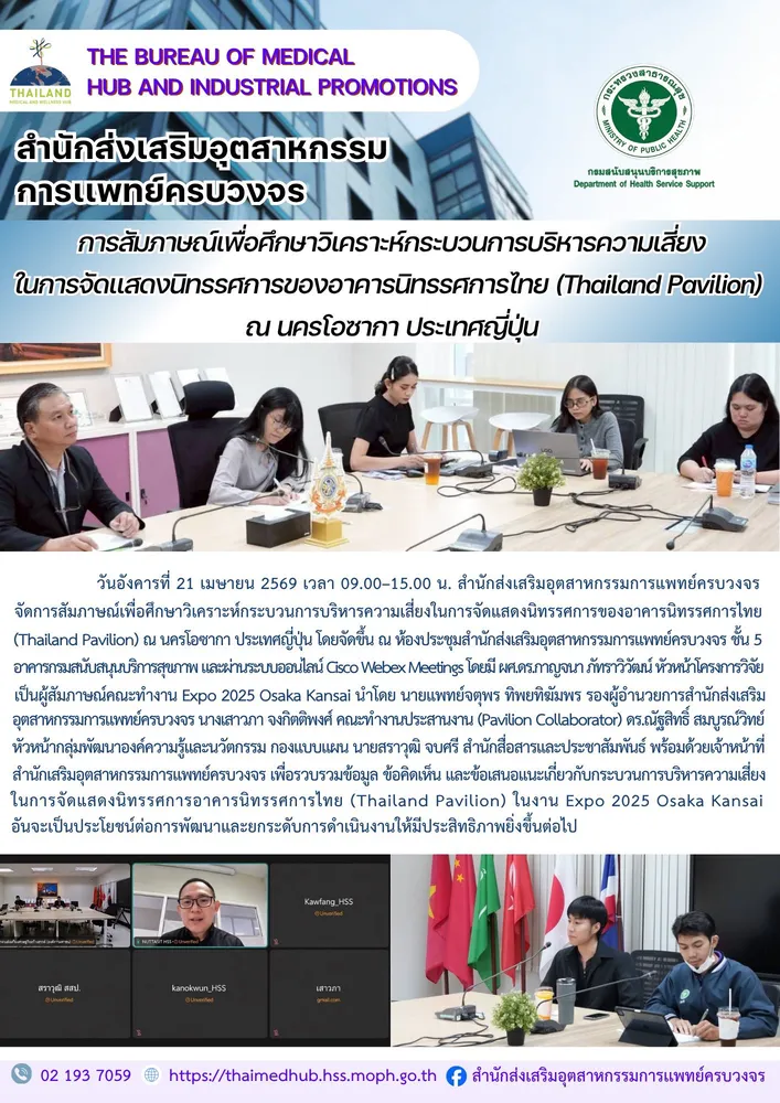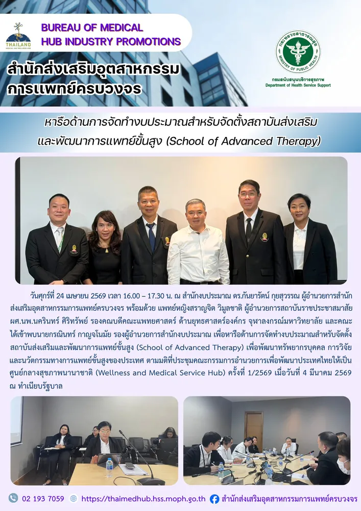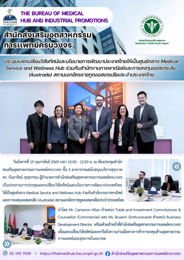 สำนักส่งเสริมอุตสาหกรรมการเเพทย์ครบวงจร กรมสนับสนุนบริการสุขภาพ กระทรวงสาธารณสุข ชั้น 5 อาคารกรมสนับสนุนบริการสุขภาพ เลขที่ 88/44 หมู่ 4 ซอยสาธารณสุข 8 ตำบลตลาดขวัญ อำเภอเมือง จังหวัดนนทบุรี 11000
